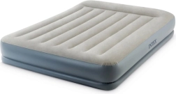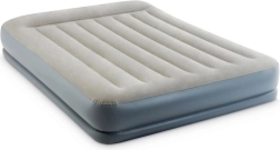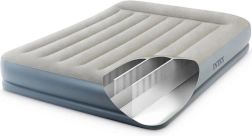 Dvoslojni napuhujući madrac INTEX s tehnologijom Dura-Beam Fiber-Tech nudi čvrstu potporu, udobnu velur površinu i brzo napuhavanje i ispuhavanje zahvaljujući ugrađenoj električnoj pumpi za otprilike 3 minute. Idealan kao udoban krevet za goste, za dom i kampiranje, s nosivošću do 272 kg i lakim spremanjem.