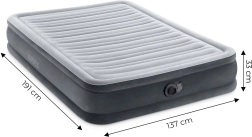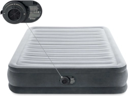 Nafukovací madrac INTEX idealan je kao udoban pomoćni ležaj za goste ili za kampiranje. Integrirana pumpa na 220–240 V omogućuje brzo napuhavanje za cca 4,5 minute i automatsko ispuhavanje bez napora. Velur površina je mekana na dodir, dok izdržljivi PVC osigurava dugi vijek trajanja i jednostavno održavanje.