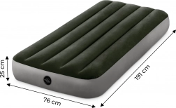 Uživajte u udobnosti na putovanjima ili kod kuće s ovim nafukavajućim madracem marke Intex. Dimenzija 191x76x25 cm savršen je za djecu ili pojedince na putovanjima, bilo u hotelu ili na kampiranju. Izrađen od izdržljivog PVC-a i prekriven ugodnim vodootpornim velurom.
