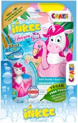 Pretvorite kupanje u mali ritual radosti. Šumeća bomba za kupanje INKEE nakon ubacivanja u vodu se otapa, stvara šareni efekt i ispunjava kupku slatkim popcornom. Unutra vas dodatno čeka preslatko iznenađenje – plažni jednorog, koje će razveseliti male ljubitelje čarobnog svijeta.