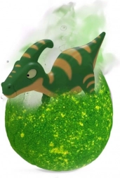 Velika šumeća kugla za kupanje od 100 g pretvara vodu u pjenušavu kupku punu boja i mirisa. Kad se jaje otopi, djecu čeka iznenađenje – mala figurica dinosaura za daljnju igru i skupljanje. Idealan poklon za male ljubitelje dinosaura i zabavnih kupki.