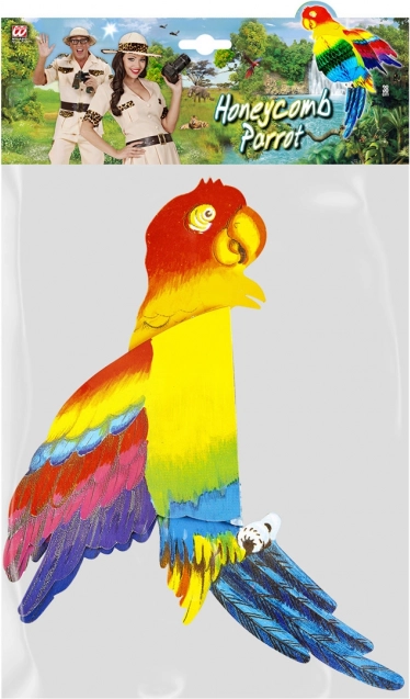 Unesite u interijer egzotičnu atmosferu s visećom dekoracijom papiga duljine 38 cm. Zahvaljujući šarenom dizajnu, realističnom izgledu i saćastom 3D efektu odlično ukrašava dječju sobu, tematsku zabavu i dnevni prostor. Lagan kartonski materijal omogućuje jednostavno vješanje i premještanje, dekoracija je prikladna od 3 godine i zadovoljava sigurnosne norme.