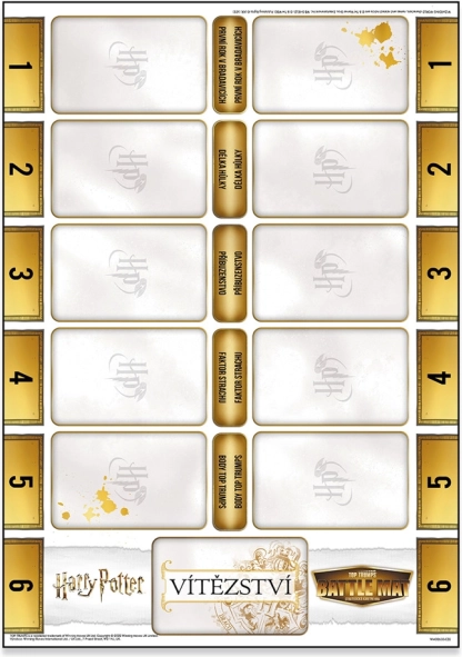 Top Trumps Battle Mat je nova društvena varijanta popularne igre Top Trumps iz svijeta Harryja Pottera. Igra je u potpunosti na hrvatskom i idealna je za obitelji i društvo prijatelja. Vaš je cilj pobjeđivati u kategorijama, skupljati karte i prvi odnijeti pobjedu u sedam bitaka.