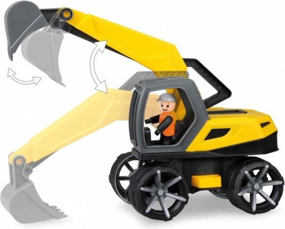 Robustan dječji bager iz serije TRUXX 2 za zabavu kod kuće i na otvorenom. Nudi rotirajuće tijelo s osiguračem, potpuno funkcionalnu ruku s kašikom upravljanu ručkom te figuru vozača u lako dostupnoj kabini. Proizvedeno od nezaprljivog, sigurnog plastika u Češkoj Republici.