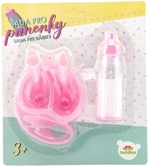 Set za lutke sadrži sve što ti treba za hranjenje: bočicu s mlijekom i posuđe. Sjajna zabava za djecu od 3 godine!