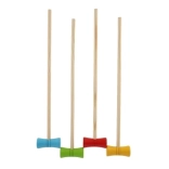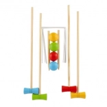 Vanjska zabava za cijelu obitelj! Šareni drveni kroket idealna je igra za djecu od 6 godina. Tko će srušiti rekord s najmanjim brojem udaraca?
