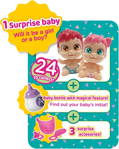 Baby Buppies su zabavne kolekcionarske lutkice u stiliziranom pakiranju koje podsjeća na bočicu. Svaka beba zna se realistično gugutati i smijati, donoseći u igru emocije i puno smijeha. Zahvaljujući živim bojama i slatkom dizajnu djeca će ih brzo zavoljeti.
