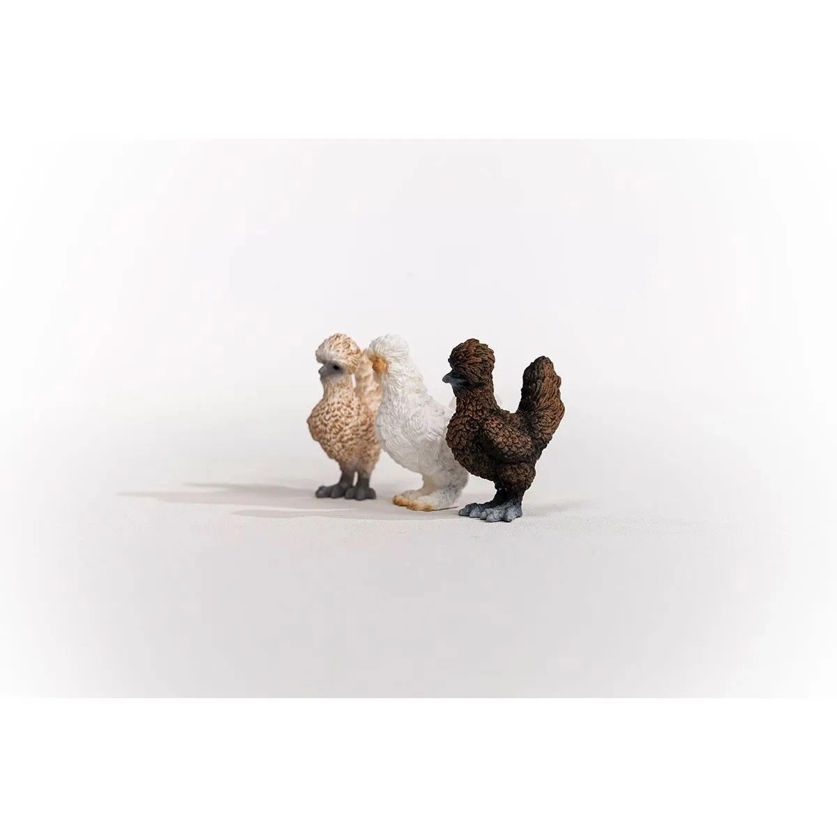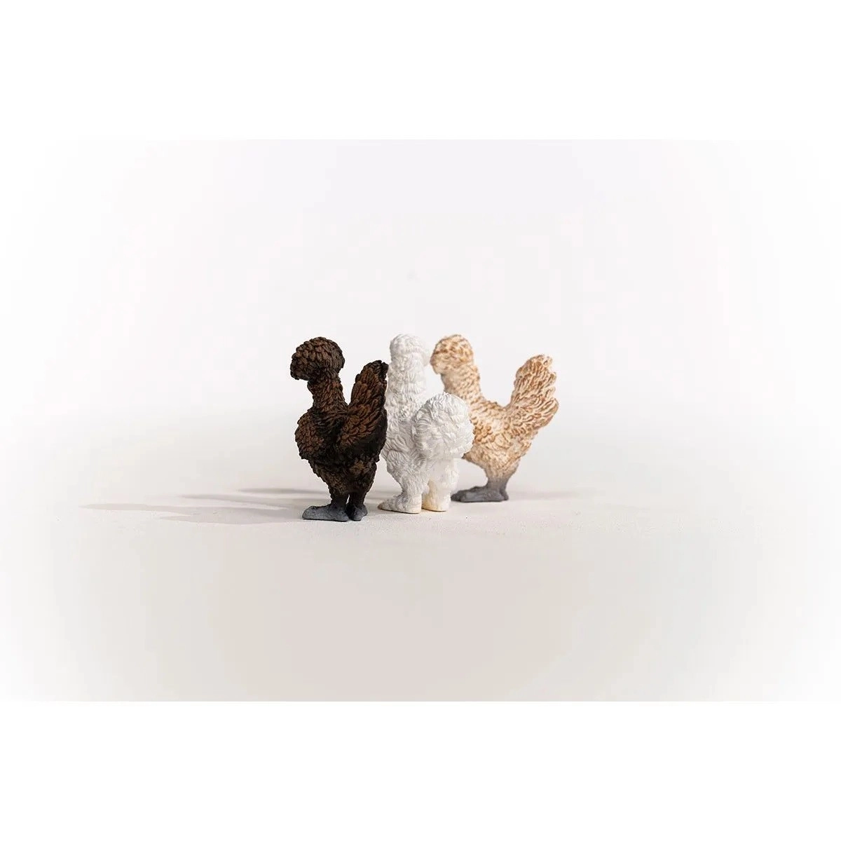 Set sadrži kokoši u smeđoj, bijeloj i bež boji – djeca ih brzo prepoznaju i mogu podijeliti uloge u pričama.
