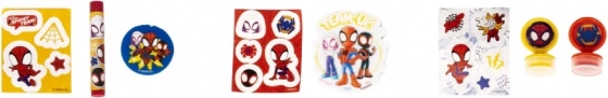Sadrži razne potrepštine poput naljepnica, blokova ili plakata s motivom Spider-Mana, idealno za svakodnevnu upotrebu.