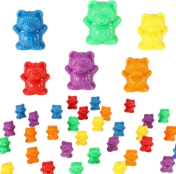 36 šarenih medvjedića u 6 boja motivira djecu na razvrstavanje, zbrajanje i uspoređivanje. Idealno za prve matematičke korake kroz igru.