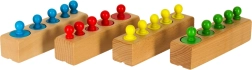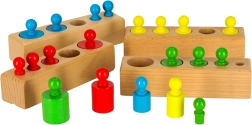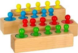 Ova drvena Montessori slagalica s raznobojnim valjcima idealno je pomagalo za svestrani razvoj djeteta. Svaka boja predstavlja drugačiju visinu i širinu, što potiče logičko razmišljanje, razvrstavanje i uspoređivanje. Jednostavan dizajn i prirodni materijali savršeno se uklapaju u filozofiju Montessori.