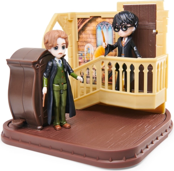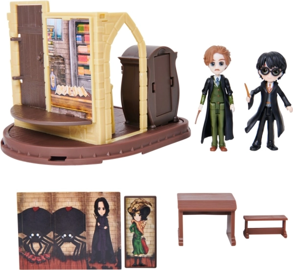 Ovaj sjajan igraći set inspiriran svijetom Harryja Pottera donosi djeci mogućnost da magiju dožive izbliza. Set sadrži figurice visine 7,6 cm koje djeci omogućuju igranje omiljenih scena. Dovoljno je pritisnuti bočnu stranu ormara i pojavit će se boggart, što igru čini interaktivnijom. Rotirajuća ploča i otvarajuća vrata predstavljaju dodatne elemente koji potiču dječju maštu.