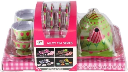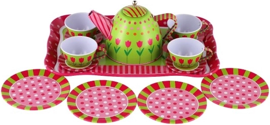 Ovaj dječji limeni čajni set donosi djeci radost zamišljenog posluživanja i društvene igre. Set je izrađen od metala, pa je čvrst, izdržljiv i lagan za male ruke. Šareni motivi cvijeća, leptira i voća potiču kreativnost i maštu, dok poslužavni pladanj olakšava prenošenje i igru.