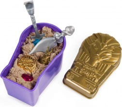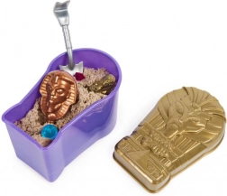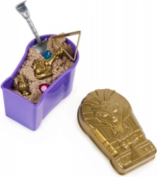 Kopajte i razotkrivajte artefakte, dragulje i tajne mumije. Svako pakiranje skriva jedan od triju likova i uzbudljivu potjeru za zlatnikom. Oblikovani pijesak ugodno drži formu i poziva na beskrajnu kreativnu igru.