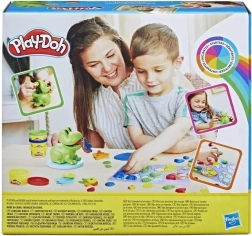 Ispod žabice skrivaju se kalupi, a na podlozi se nalaze šareni listovi lopoča za razvrstavanje; tijekom igre žaba “isplazuje” duuugačak jezik, što će djecu sigurno nasmijati. Set je idealan kao prvi komplet za male stvaratelje i kao poklon za predškolarce.