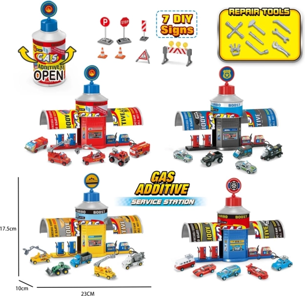 Zabavan set za igru za male vozače koji donosi realističnu benzinsku postaju s dodacima. Sadrži autić, prometne znakove i druge elemente za stvaranje priča. Realistični detalji, stojala za gorivo i crijeva potiču maštu i učenje prometnih pravila.