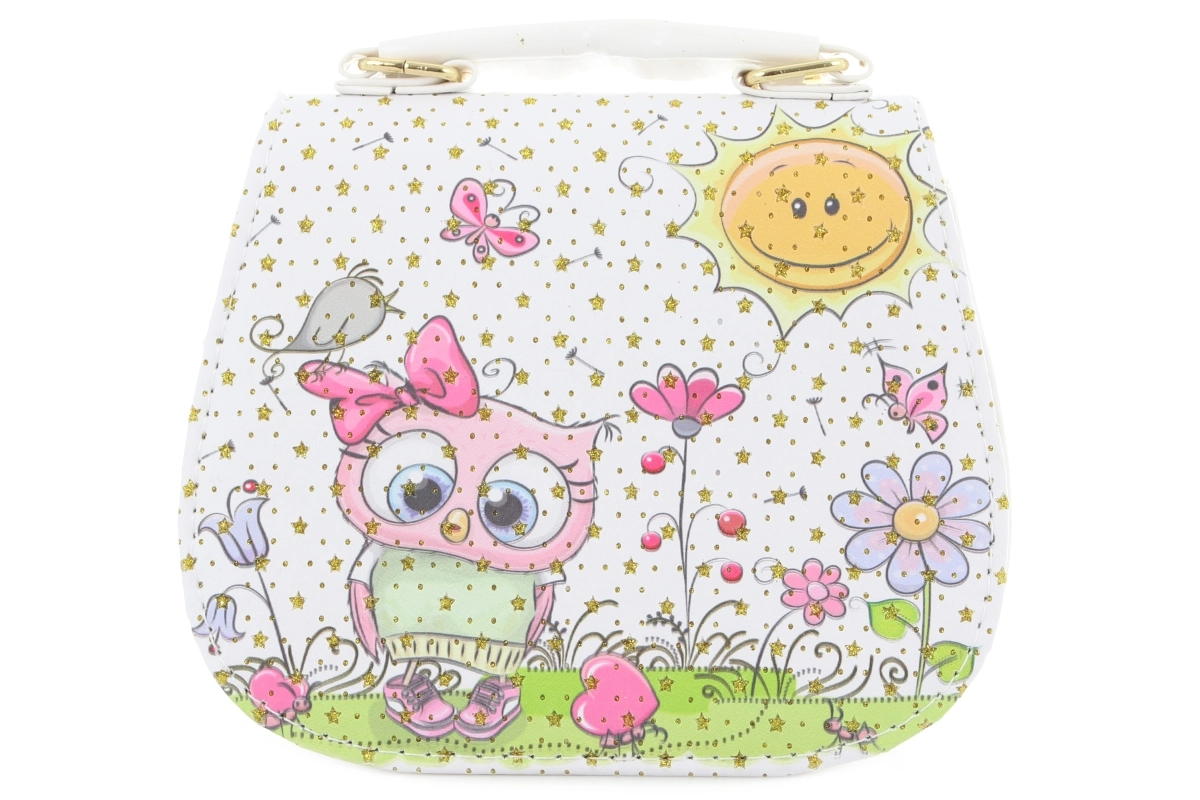Slatka dječja torbica sa sovićem u bijeloj boji razveselit će svaku malu šminkericu. Nudi kompaktne dimenzije za sitnice i idealna je za svakodnevno nošenje. Lagana, praktična i stilska opcija za djecu od 3 godine.