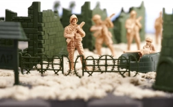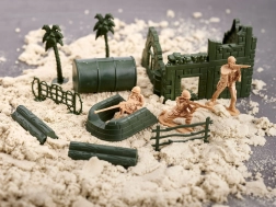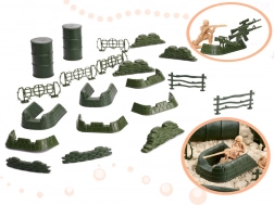 Dio seta je otprilike 60 figura vojnika u različitim pozama te bogate komponente za izgradnju vojne baze – bačve, ograde, prepreke, palme i drugo. Figurice su visoke cca 5 cm, stabilno stoje na ravnoj podlozi i lako se raspoređuju.