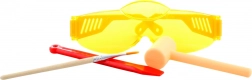 - Blok za tesanje s kostima, dlijeto, kist, čekić, zaštitne naočale, povećalo