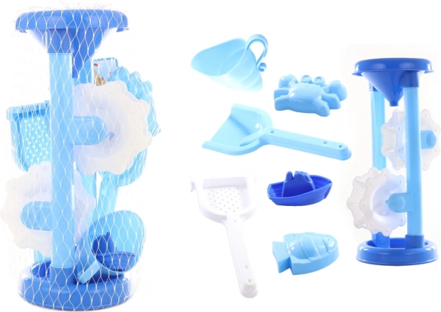 Ovaj plavi mlin za pijesak i vodu razveselit će sve male ljubitelje plažnih i vrtnih igara. Dovoljno je uliti vodu ili nasuti fini pijesak u lijevak i lopatice će se zavrtjeti, što djeci pruža puno zabave te pomaže razvijati finu motoriku i maštu.