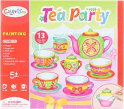 Dizajnirajte i obojite svoj vlastiti keramički set za čaj. Sadrži čajnik, šalice s tanjurićima, vrč i posudicu za šećer, s bojama i kistom. Idealno za kreativnu djecu od 5 godina.
