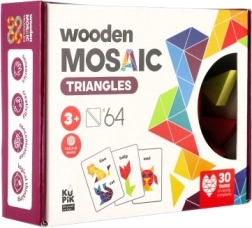 Uronite u svijet kreativnosti s drvenom mozaičnom slagalicom od trokuta, koja je savršeno prilagođena potrebama djece od 3 godine. Slaganjem raznolikih uzoraka od 64 dijela djeca uče prepoznavati boje i oblike te razvijati logičko razmišljanje i finu motoriku. Igračka donosi 30 zadataka različitih razina težine, što jamči da se mali graditelji nikada neće dosađivati.