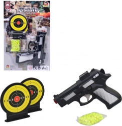Ovaj pištolj na kuglice savršena je igračka za male strijelce koji vole vježbati svoju preciznost. Zahvaljujući dvjema priloženim metama djeca mogu natjecati se s prijateljima ili se usavršavati samostalno. Laka i jednostavna konstrukcija od plastike podržava sigurnu i zabavnu igru.