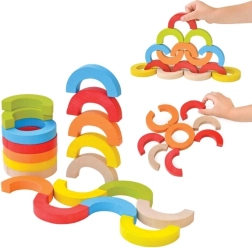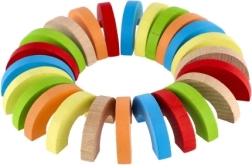 Otkrijte kreativni set za slaganje od kvalitetnog drva – set dužinih lukova s 24 dijela za djecu od 3 godine. Potiče finu motoriku, balansirajuće vještine i kreativno razmišljanje. Djeca mogu slagati u visinu, stvarati šarene uzorke i jednostavne igre te tako razvijati prostornu maštu i strpljenje.