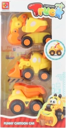 U pakiranju se nalaze tri omiljene stroja – bager, utovarivač i kiper. Svako vozilo ima glatke oblike prikladne za malu djecu i prilagođeno je sigurnoj igri od 12 mjeseci.