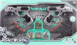 Uz ovaj set svemirskih pištolja djeca će uživati u sigurnom i uzbudljivom gađanju zahvaljujući pjenastim mecima. Dva pištolja u pakiranju omogućuju igru u paru, natjecanja i kooperativne scenarije. Kompaktne dimenzije osiguravaju udobno držanje i lako ciljanje.
