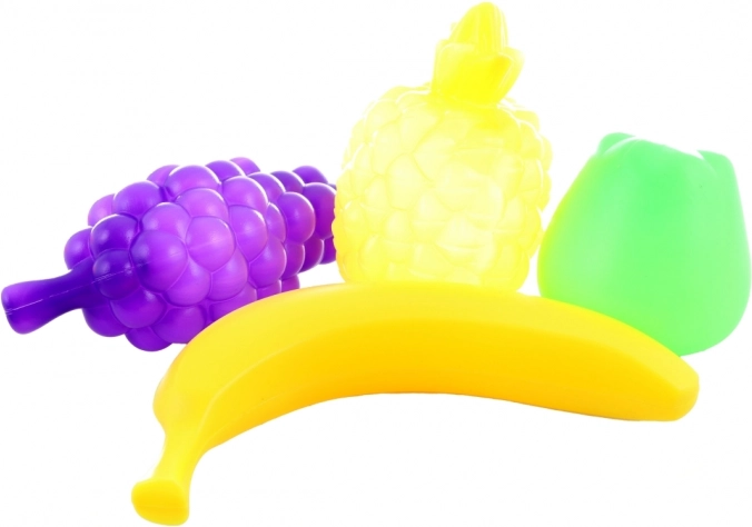 Ovaj šareni set voća uključuje omiljene vrste poput banane, jabuke, naranče, grožđa i ananasa. Svaki komad izrađen je od lagane, izdržljive plastike sa zaobljenim rubovima za sigurnu igru. Praktično pakiranje u mrežici olakšava prenošenje i spremanje.