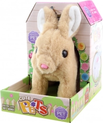 Plišani zeko na baterije. Zeko skače, ispušta zvukove i maše repom. Napajanje s 2 AA baterije (nisu uključene). Dimenzije zeca cca 15 x 19 x 7,5 cm. Dimenzije pakiranja cca 13 x 19 x 18 cm (ujedno služi kao kućica). Dob 3+