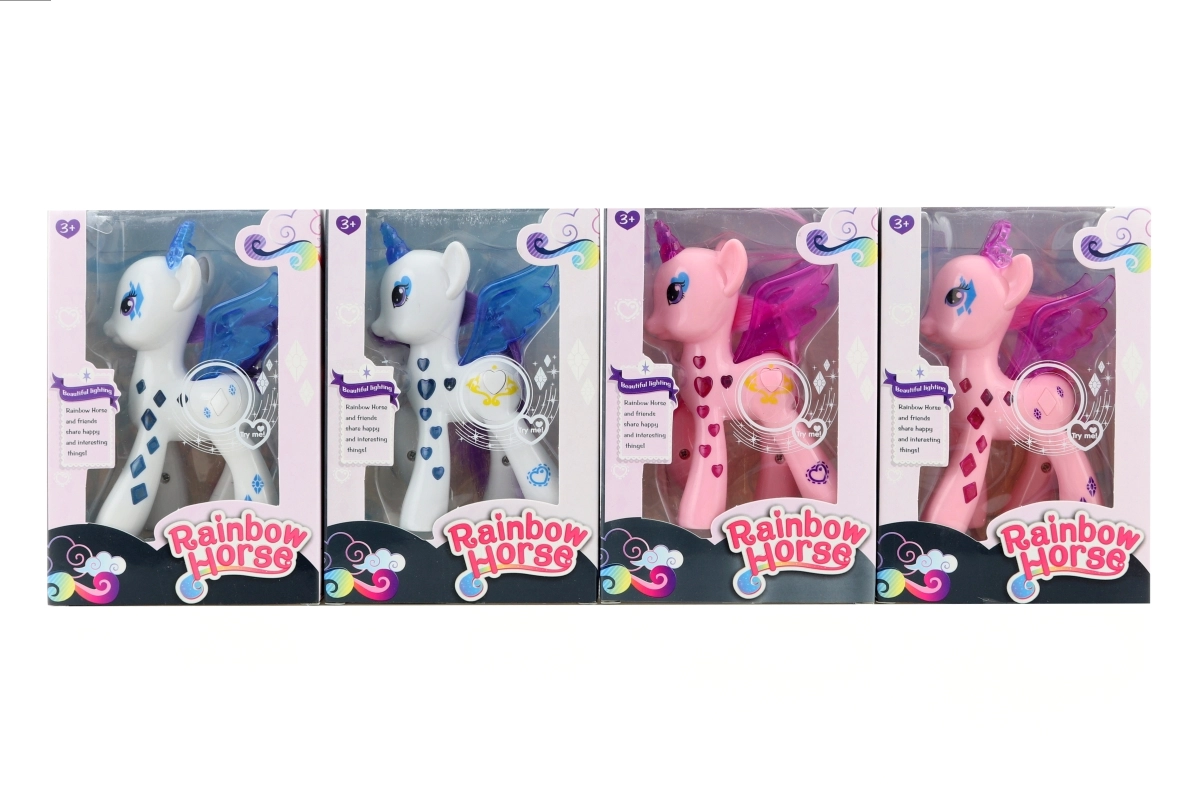 Svjetleći konjić idealan je prijatelj za male ljubitelje životinja. Zahvaljujući ugrađenom pozadinskom osvjetljenju donosi zabavu danju i navečer te potiče dječju maštu pri igri. Igračka je izrađena od izdržljive plastike i spremna je za trenutačnu upotrebu – baterije su uključene u pakiranje.
