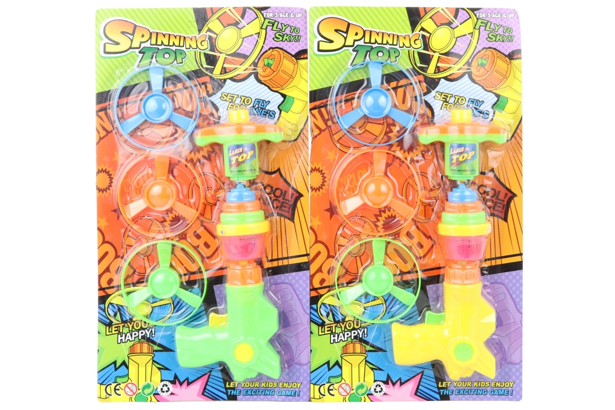 Pokrenite zabavu s baterijskim pištoljem koji ispaljuje vrtuljke u zrak i oduševit će svakog malog ljubitelja kretanja. Zahvaljujući jednostavnom upravljanju djeca brzo savladaju princip i uživaju u sigurnom letenju vrtuljaka kod kuće i na otvorenom. U kompletu je i šareni zvrk za dodatnu dozu zabave.