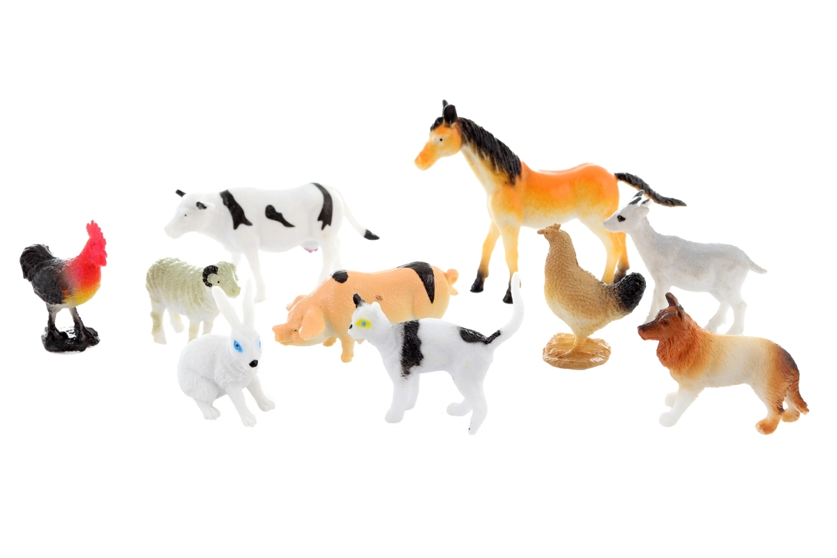 - Što je u pakiranju: konj, pas, mačka, kokoš, pijetao, krava, ovan, koza, svinja, zec (ukupno 10 kom)