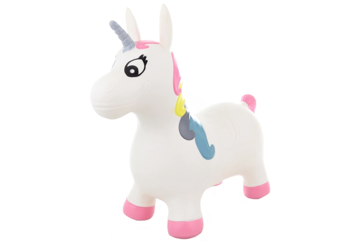 Zgodna gumena skakalica u obliku jednoroga donosi djeci sate aktivne zabave te istovremeno potiče ravnotežu i motoriku. Zahvaljujući kompaktnim dimenzijama i stabilnoj konstrukciji idealna je za igru kod kuće i u vrtu. U pakiranju se nalazi pumpica za brzo napuhavanje, nosivost do 50 kg i nisko sjedalo za sigurno penjanje čak i za najmlađe.
