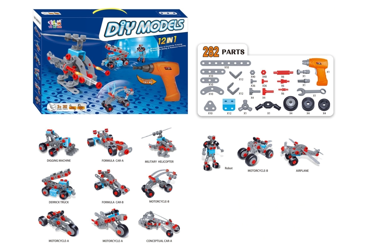 Vijčana konstrukcijska slagalica s bušilicom – 282 dijela