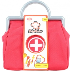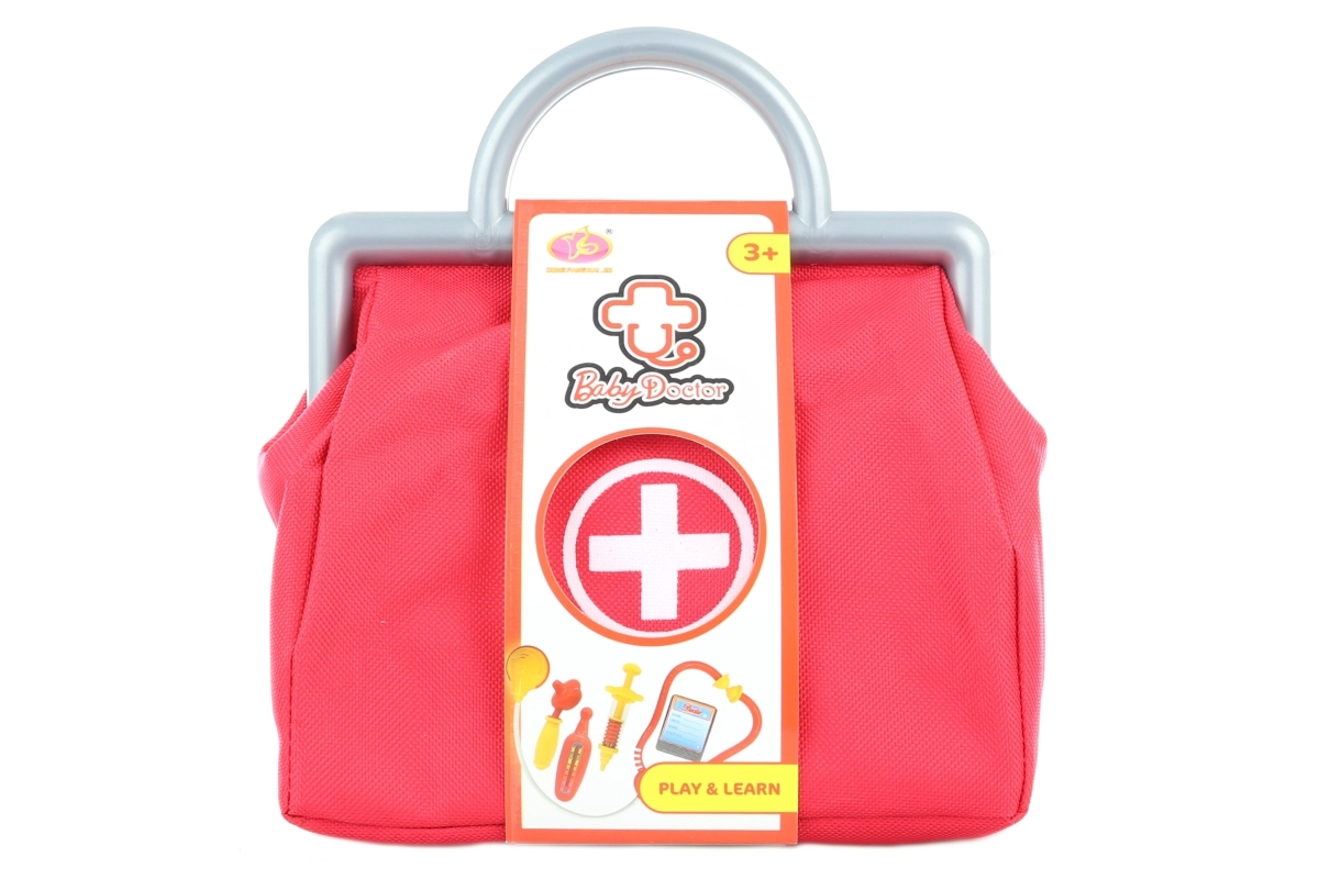 Liječnički set sadrži plastični stetoskop, otoskop, injekciju, identifikacijsku oznaku i toplomjer. Dimenzije torbe cca 20 x 22,5 x 8,5 cm. Dob 3+.
