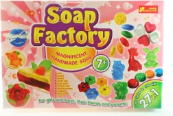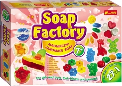 Veliki set za izradu sapuna prekrasan je dar za svu kreativnu djecu. Set sadrži sve potrebno za izradu do 27 sapuna (novčići, srca, gumbi, životinje, cvijeće, torta, bomboni i drugi oblici). Set sadrži npr. sapunsku bazu, jestivu boju, šarenu salvetu, mirisne esencije, čašice, pipetu, šljokice, šablone, perle, vrpce i puno toga još. Dimenzije pakiranja cca 44 x 30 cm. Dob 7+. PROIZVEDENO U EUROPI