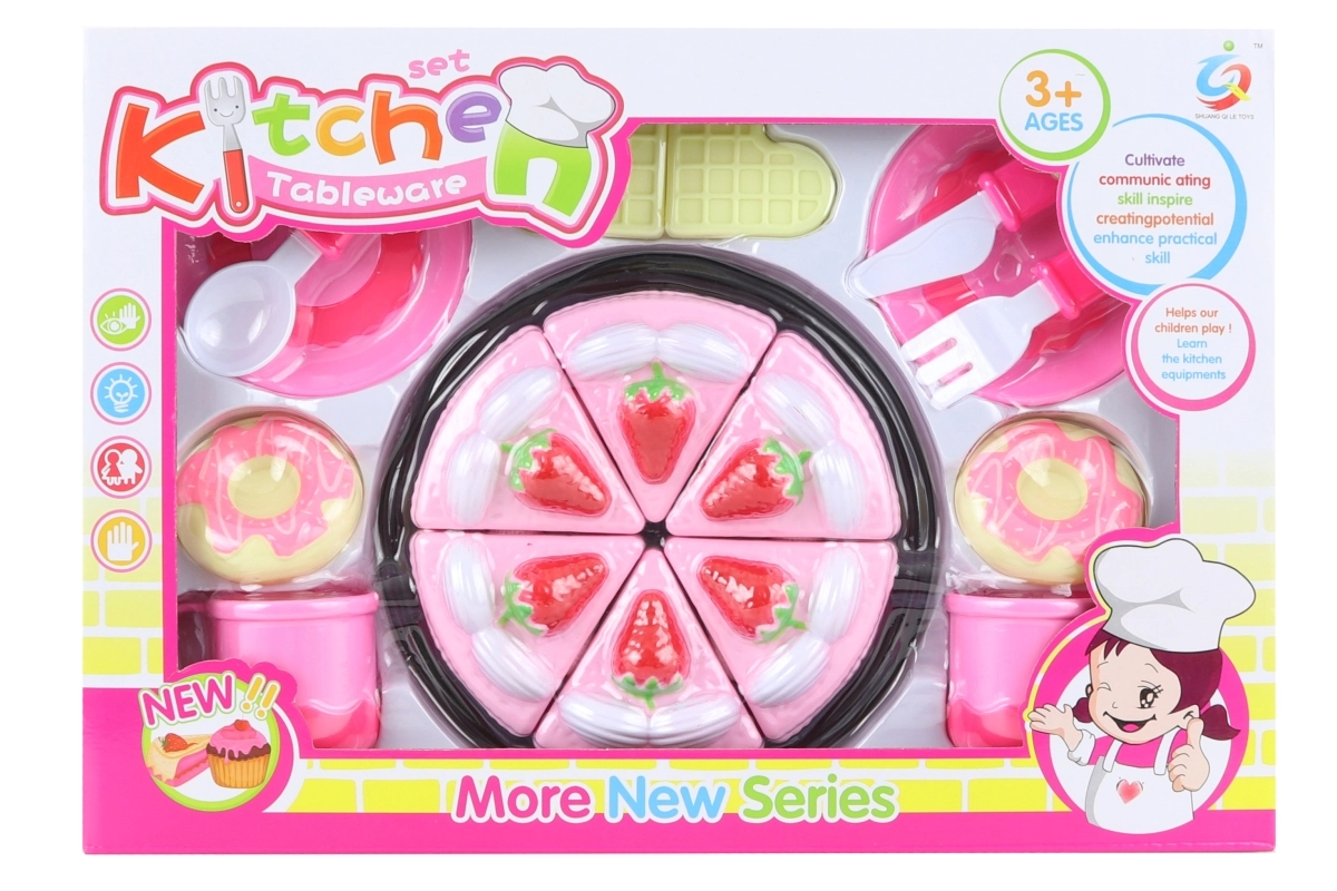 Ovaj šareni set za rezanje torte s posuđem donosi djeci sate kreativne zabave. Zahvaljujući priboru, djeca mogu oponašati pravo posluživanje, učiti dijeljenje i razvijati socijalne vještine. Plastična izrada je lagana, sigurna i jednostavna za održavanje.