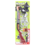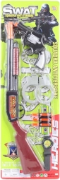 Set oružja za djecu sadrži pušku, revolver, lisice, sat i tri metka s prianjajućom kapicom, idealno za igru i razvoj dječje mašte.