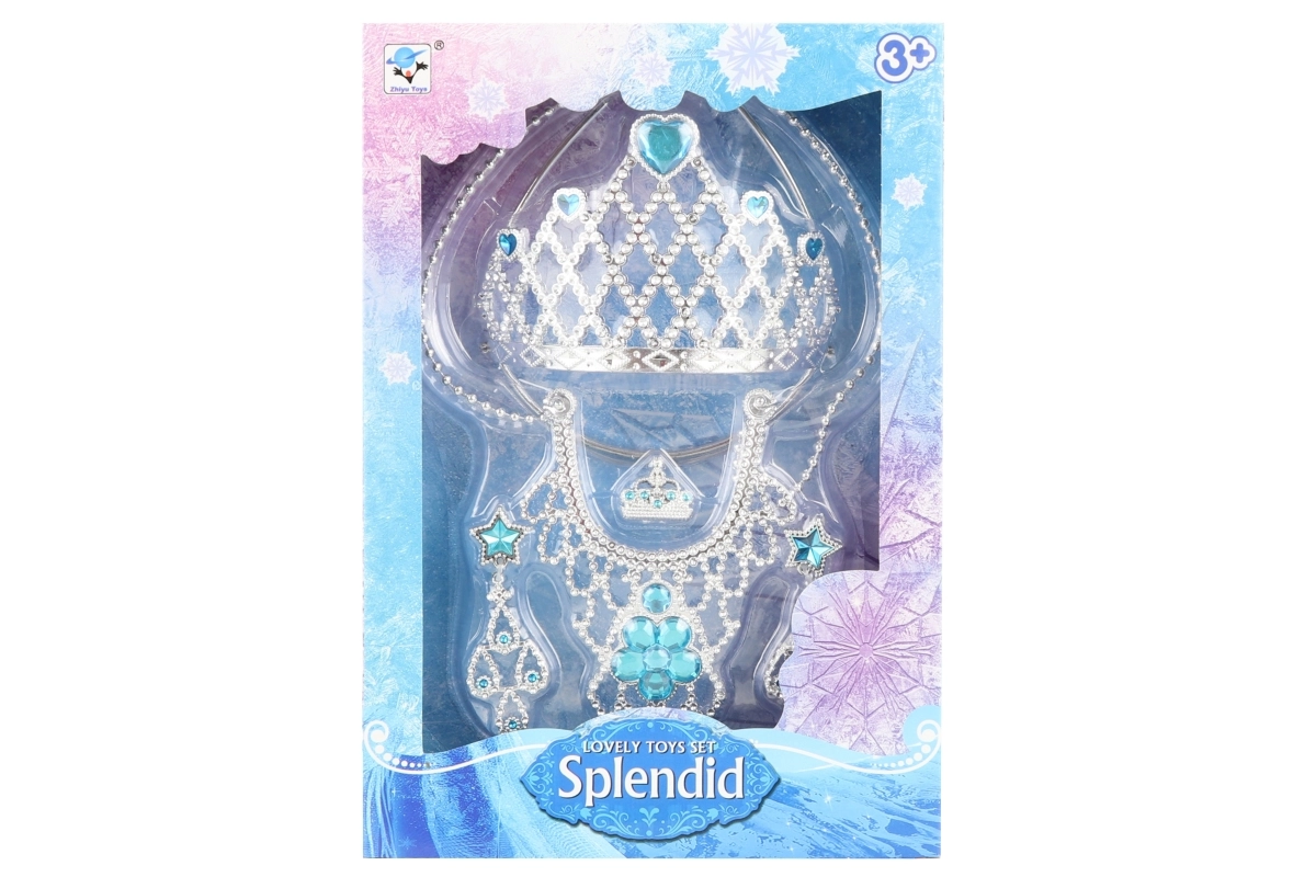 Ovaj elegantni set dodataka pretvara svako dijete u malu princezu. Laka i udobna kruna zajedno sa sjajnim nakitom odlično upotpunjuju kostime i svakodnevnu igru princeza. Zahvaljujući sigurnoj izradi, set je prikladan za male ruke i lako se stavlja.