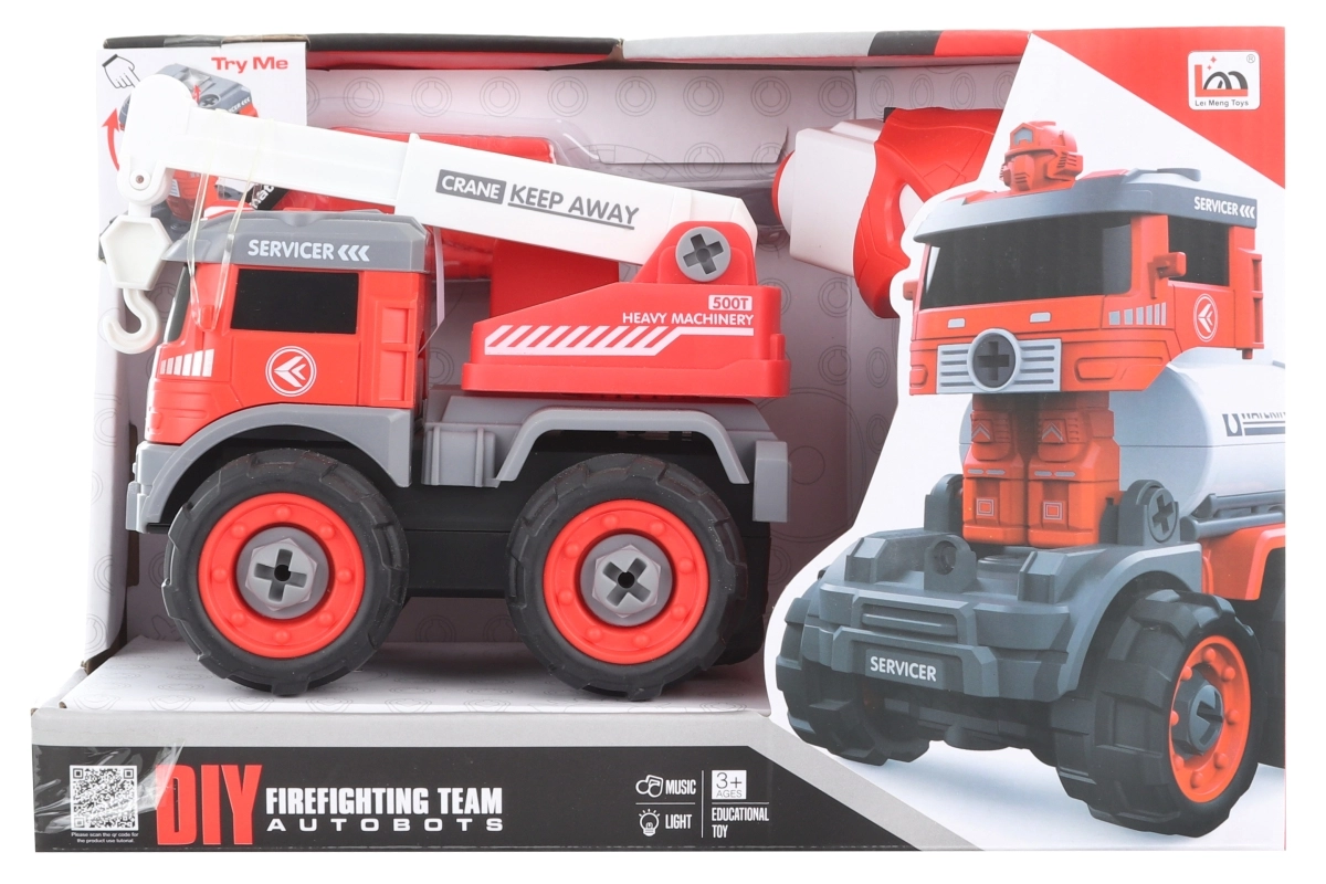 Zabavna konstruktorska set-igračka i RC vozilo u jednom: vijčani vatrogasni auto koji se uz priloženi alat može sastaviti, voziti naprijed i natrag te čak transformirati u robota. Zahvaljujući izvadivom motoru iz bušilice, svjetlosnim efektima i zvukovima, djeci od 3 godine pruža sate kreativne igre. Vijčanje i slaganje, daljinsko upravljanje, transformacija u robota, svjetla i zvukovi te praktično napajanje čine ga sjajnim poklonom.