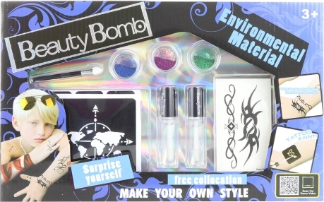 - Mješavina privremenih tetovaža, šablone, šljokice i dodaci