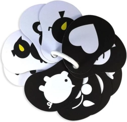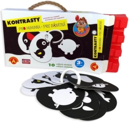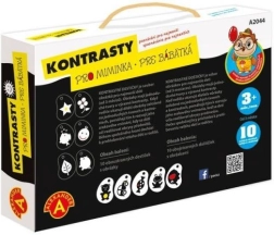 Set Alexander Kontrasti donosi jednostavnu i učinkovitu vizualnu stimulaciju za najmlađe. U razdoblju oko 3. mjeseca bebe najbolje doživljavaju visok kontrast i oštre linije, što potiče razvoj vidne oštrine i koncentracije. Čvrste kartice s izraženim motivima (oblici, životinje, simboli) privlače pozornost i podupiru prve vizualne praćenje.