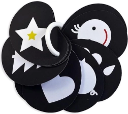 Crno-bijeli motivi s naglašenim obrisima pomažu bebama bolje fokusirati pogled i razvijati vizualnu percepciju već od 3 mjeseca.