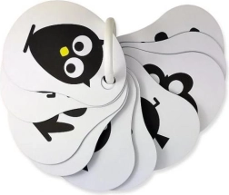 Zahvaljujući plastičnom prstenu kartice ostaju na okupu, lako se prenose i beba ih može sigurno uhvatiti. Nježan, ali izdržljiv papir ugodan je u ruci i odolijeva čestom razgledavanju. Igra je nastala uz stručnu garanciju psihologinje s Varšavskog sveučilišta, Aleksandre Petrovske, te pripada popularnoj seriji Sovica mudrica.