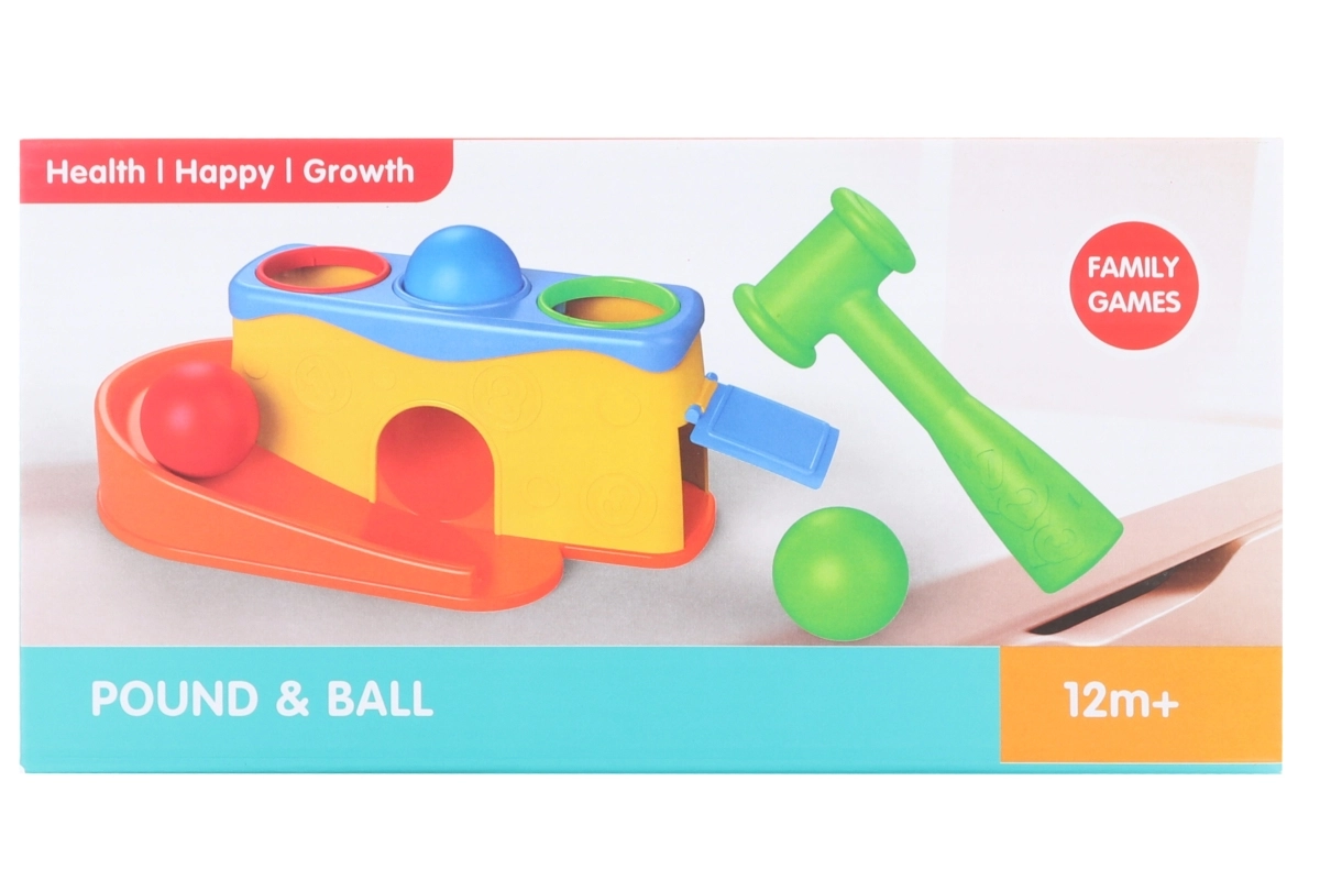 Zabavna plastična čekićarka s rampom potiče finu motoriku, koordinaciju oko–ruka i prepoznavanje boja. U kompletu su 3 loptice i čekić; nakon udarca loptice se kotrljaju niz zabavnu rampu. Idealna igračka za najmlađe od 1 godine.