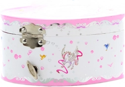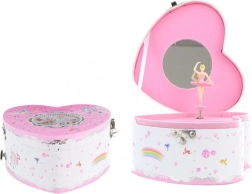 Elegantna srcolika kutijica za nakit s glazbenim mehanizmom oduševit će svaku ljubiteljicu slatkih dodataka. Nakon navijanja ključem, balerina se unutra počne okretati uz melodiju. Unutra se nalazi zrcalce i prostor za sitna blaga. Romantičan dizajn, plesačka balerina i praktično odlaganje nakita u jednom.