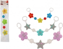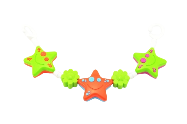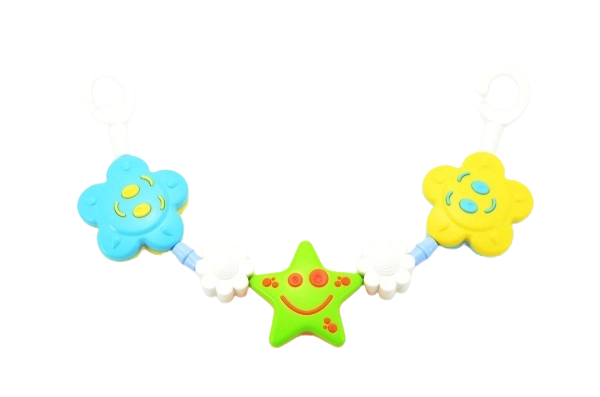 Ova šarena lančana igračka sa suncem i zvjezdicama lako se pričvršćuje na kolica, autosjedalicu ili krevetić. Potiče vizualnu percepciju, finu motoriku i zabavlja bebu tijekom vožnje i kod kuće. Zahvaljujući izdržljivoj plastici i sigurnoj izradi idealna je za svakodnevnu uporabu.